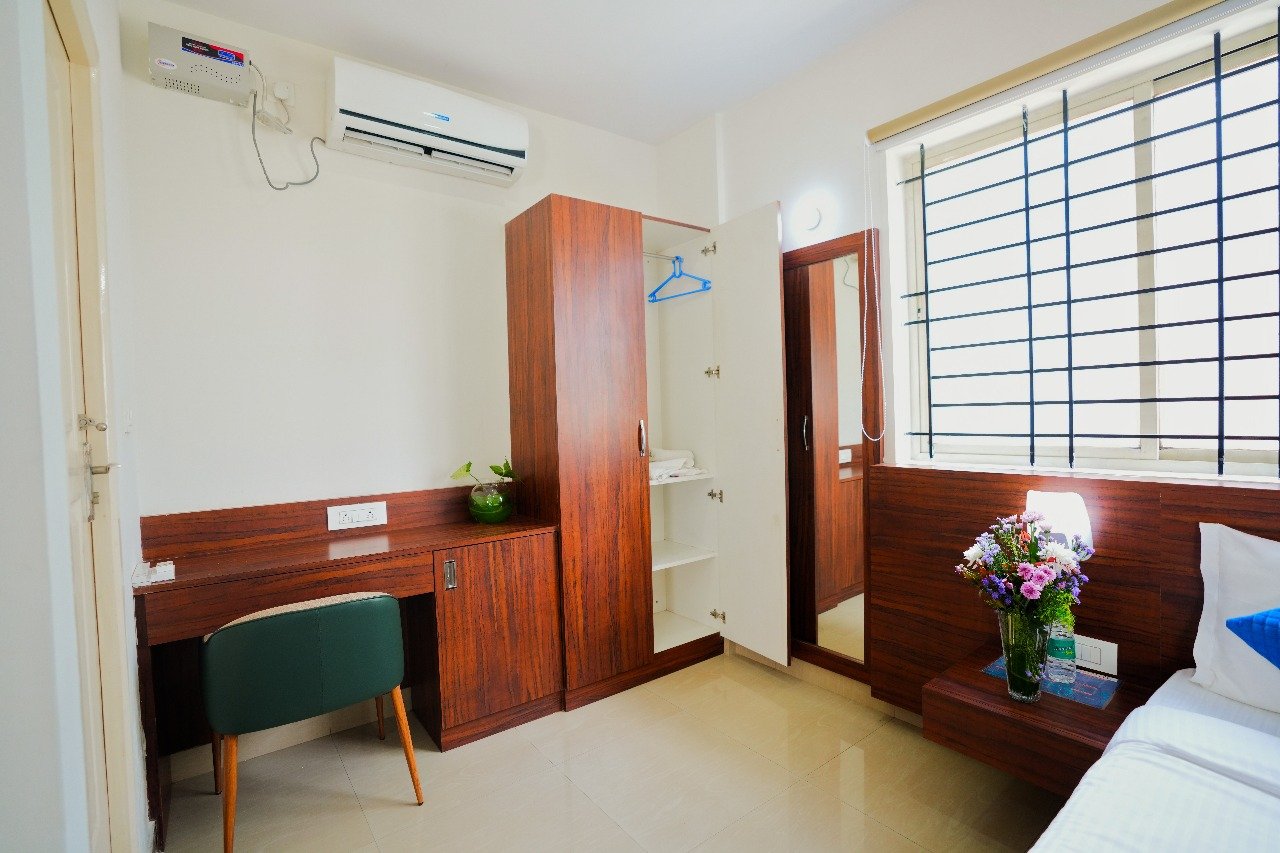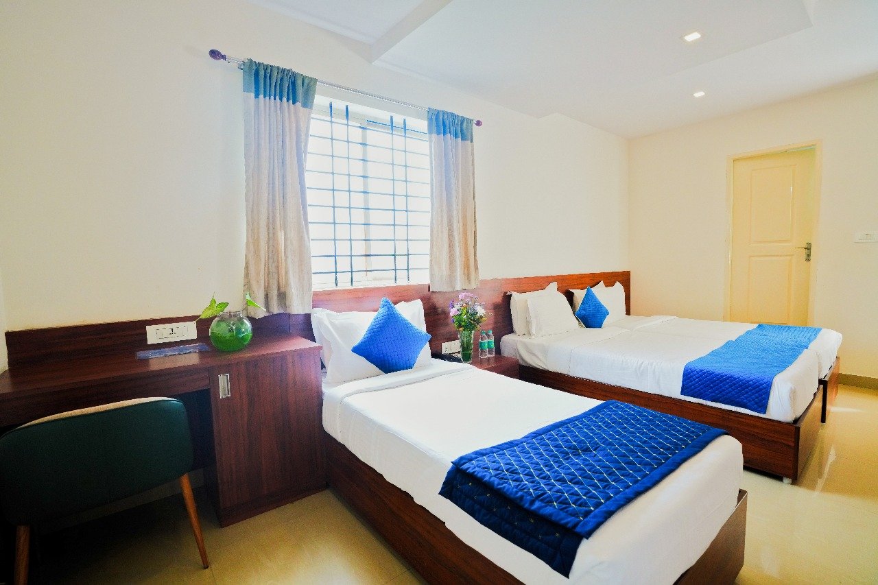 The Aero Hotel is located approximately 10 minutes from Kempegowda International Airport, offering quick and convenient access for travelers.